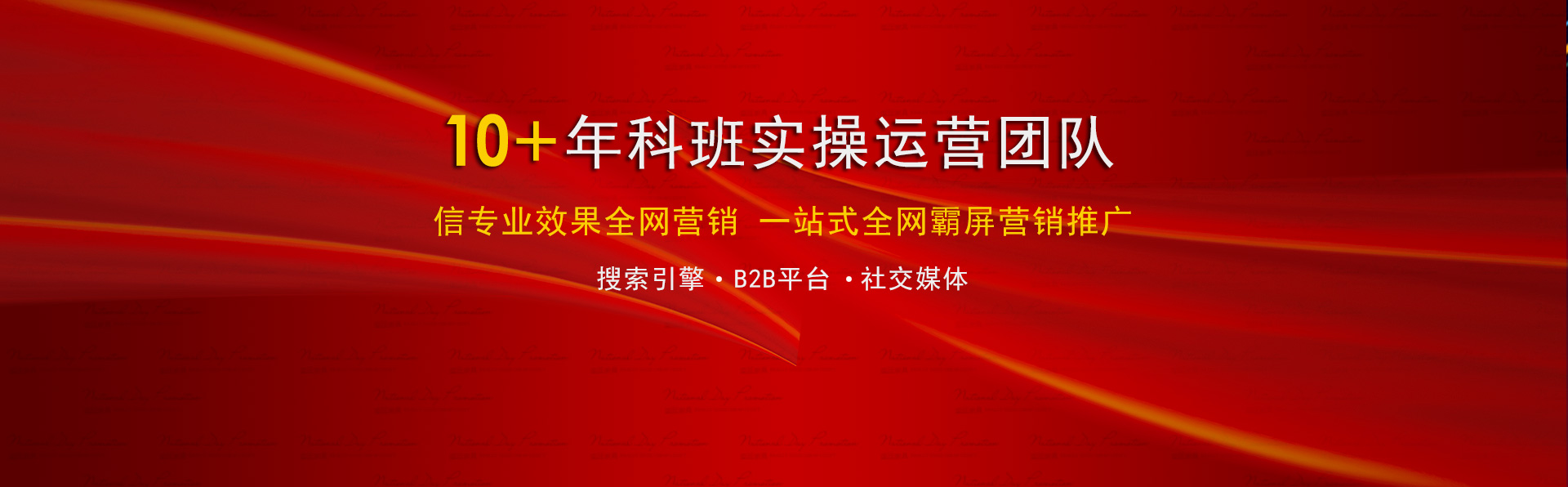 100+專業(yè)技術(shù)牛人,至少10年以上實(shí)戰(zhàn)經(jīng)驗(yàn),豐富的網(wǎng)絡(luò)資源,量身定制不同的解決方案,解決您的營(yíng)銷(xiāo)推廣難題。